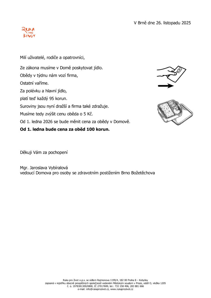 Změna cen obědů v Domově Božetěchova Související příspěvkyZměna cen obědů v Denním stacionáři BožetěchovaČíst více